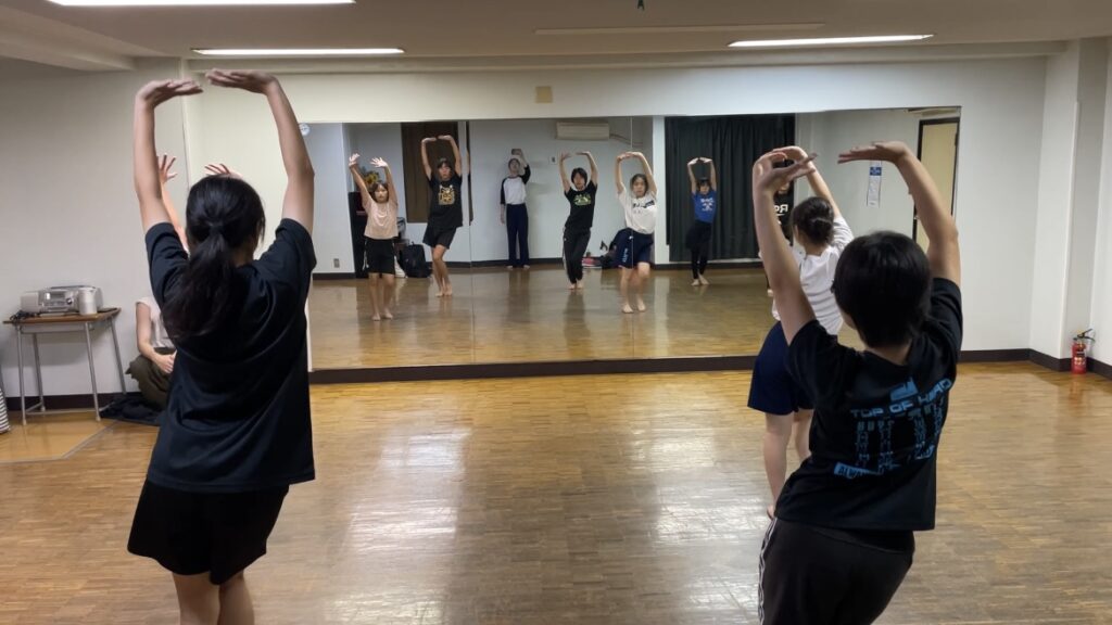 振り付けが進んでいます!体の使い方や見せ方がとても難しいですが、鏡を見て先生とどう違っているのか見ながら頑張っています。それぞれ苦手なところや得意なところはありますが、苦手な部分も挑戦してできること増やしていこう! -